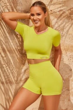 Tensions are running high in our Altitude short sleeve crop top, designed in smooth seamless knit fabric. Our cropped gym top features subtle scooped neck detailing and thick secure ribbed under-banding for a tight cut and flattering fit. Were pairing this gym top with the matching shorts or leggings to keep you going at a supercharged pace.
