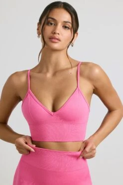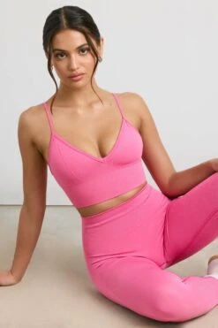 Exclusive – V-Neck Define Luxe Sports Bra In Hot Pink