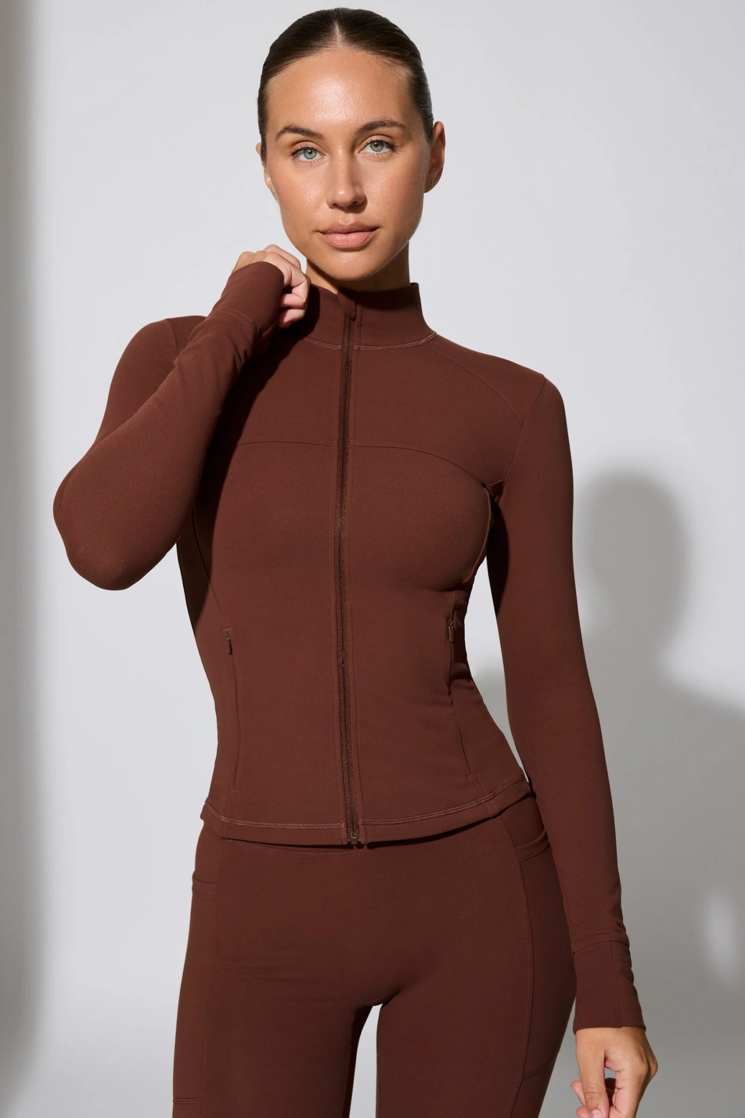 Growing – Long Sleeve Zip Up Jacket In Chocolate