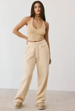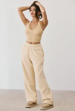 Laze – Petite Fleece Wide Leg Joggers In Cashmere
