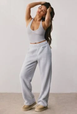 Laze – Petite Fleece Wide Leg Joggers In Fog