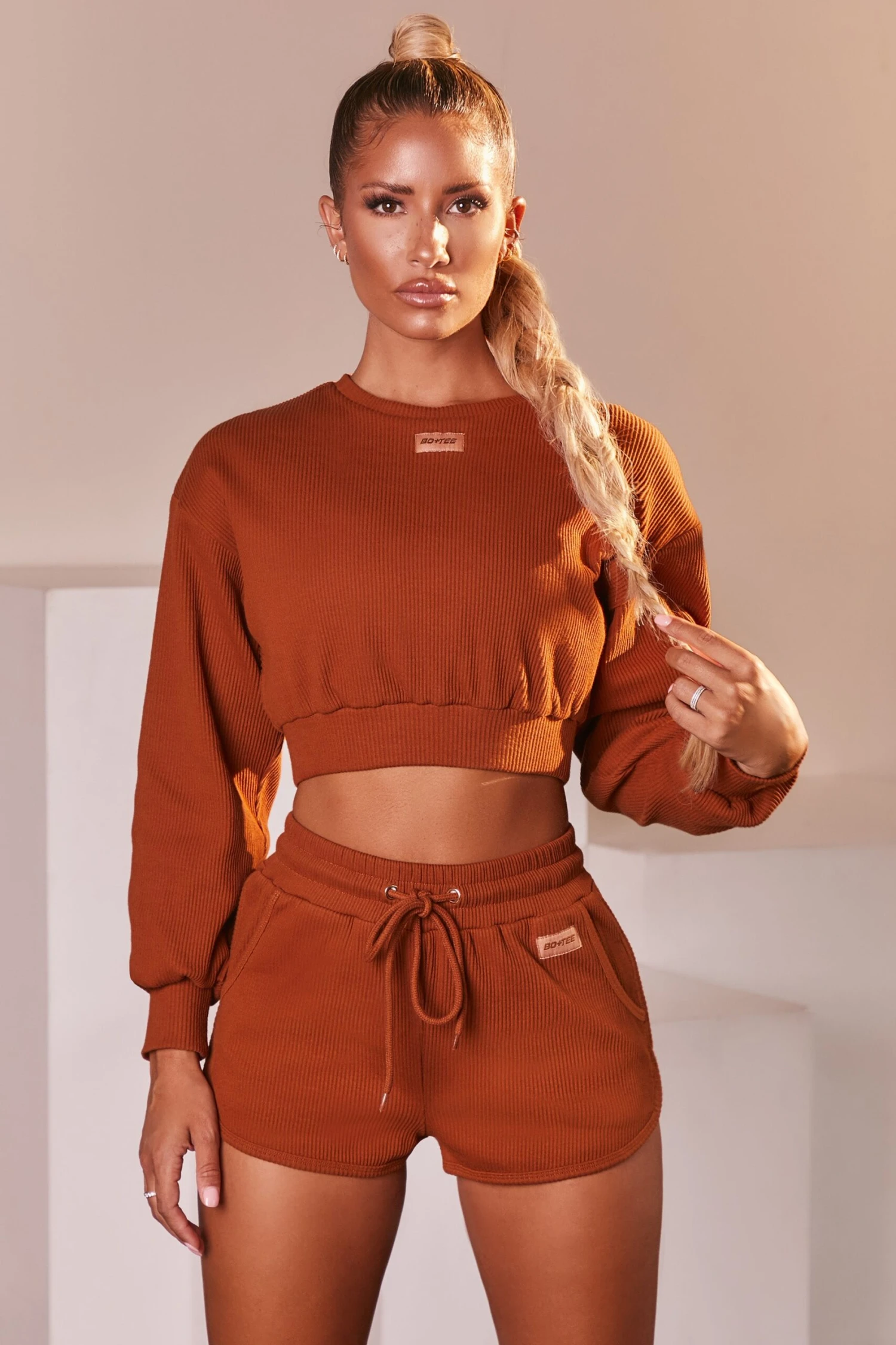 Soft, comfy and stylish in a simple design, our cotton ribbed shorts are designed with an elasticated, drawstring tie waist and side pockets. Cut in a mini length with round hem detailing, we’re pairing with the matching oversized sweatshirt for effortless styling. Take a rest day, ‘cos you deserve it.