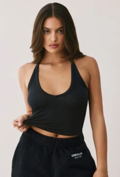 Rest – Modal Rib V Neck Tank Top In Onyx