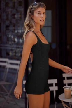 Serene – Soft Rib Backless Unitard In Black