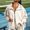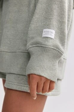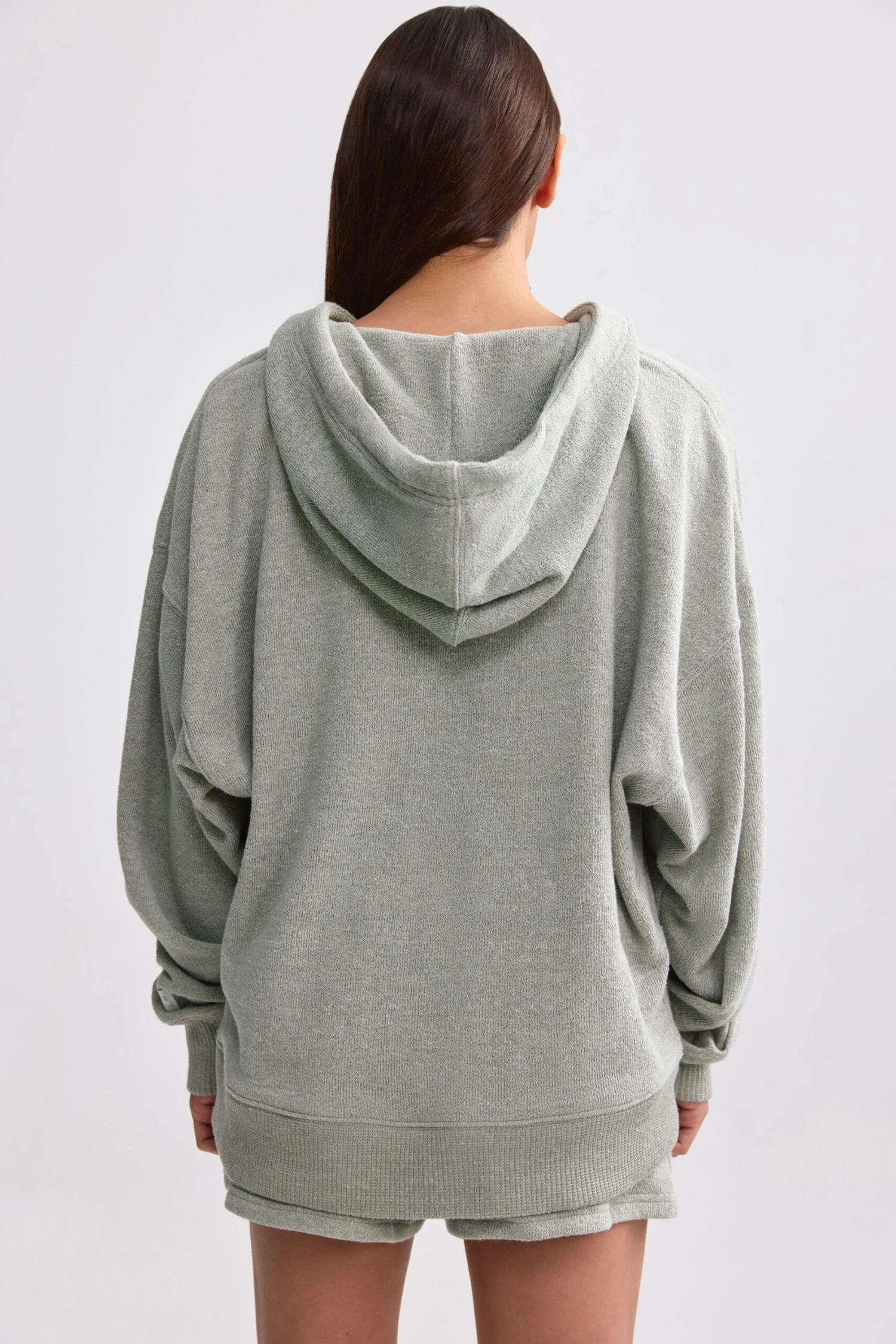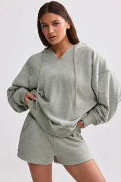 Terry Towelling V-Neck Hoodie In Sage Grey